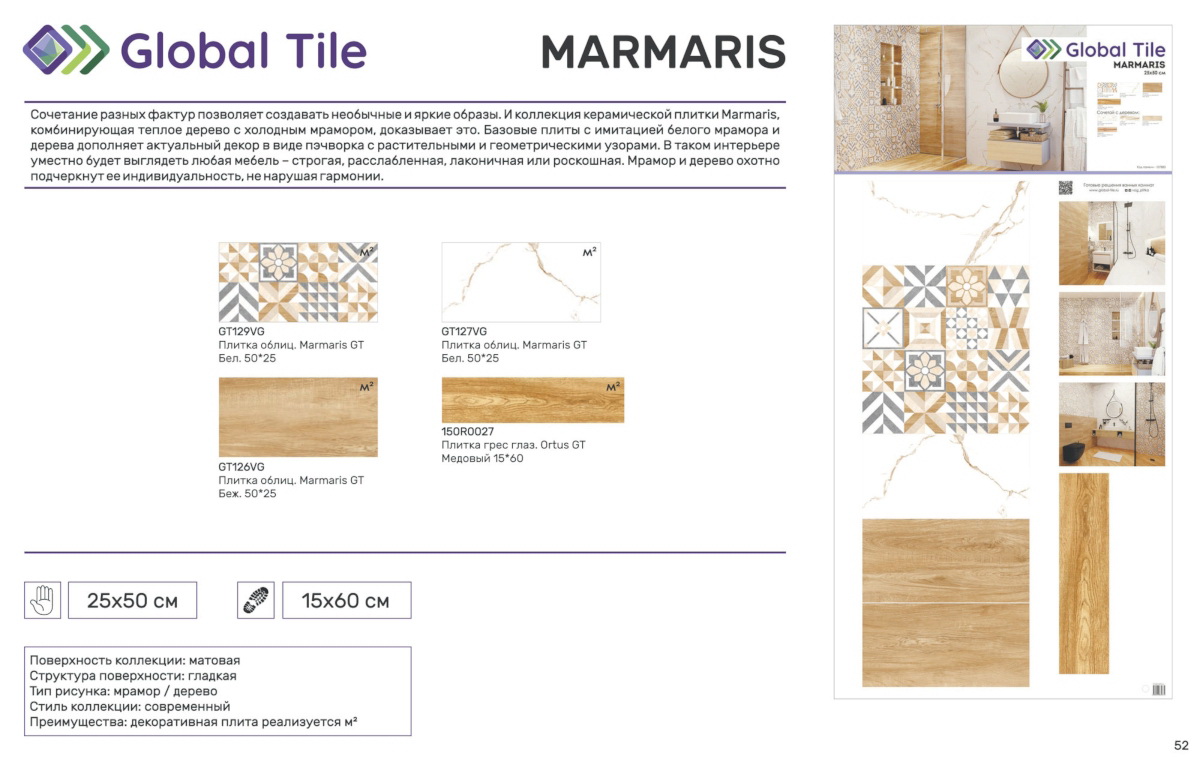 GT126VG Настенная плита GlobalTile Marmaris GT Беж. 25x50 дерево_ 1/74,25