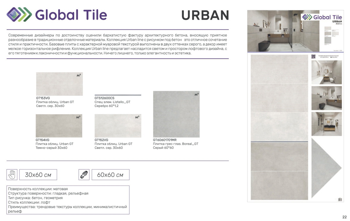 Главная / Каталог / GT153VG Настенная плита GlobalTile Urban GT Светл. сер. 30x60 _line_ 1/58,32