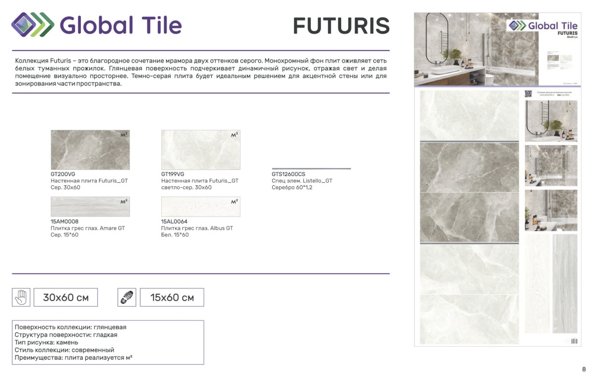Главная / Каталог / GT199VG Настенная плита GlobalTile Futuris_GT светло-сер. 30x60 _ 1/58,32