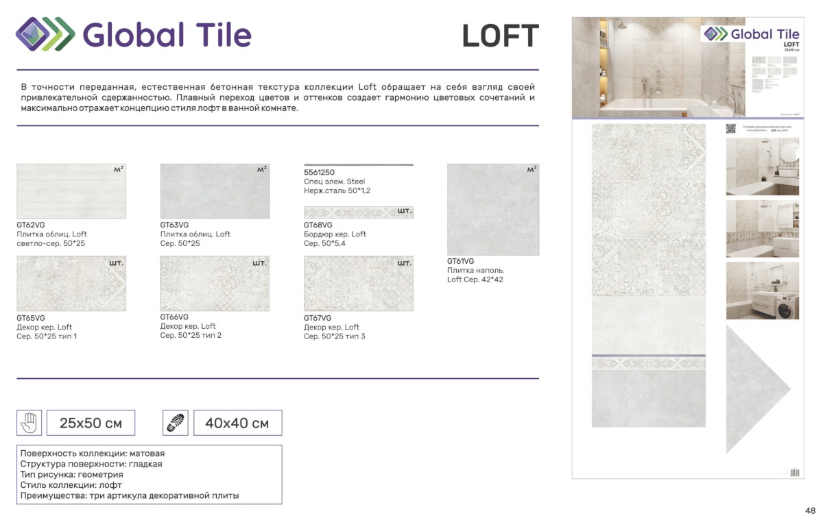 GT65VG Декор кер. GlobalTile Loft Сер. 25x50 тип 1_ 1/7