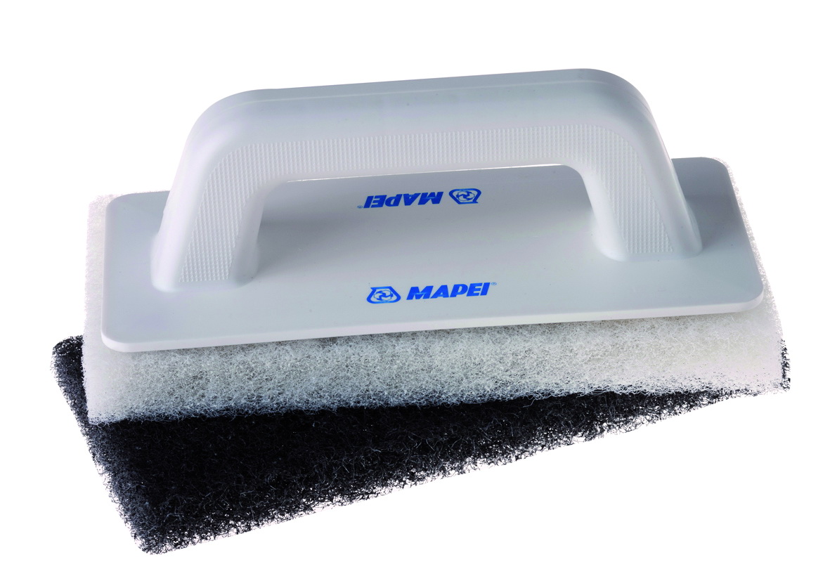 Шпатель позволяет размыть следы эпоксидного состава на поверхности, не вымывая при этом затирку из швов. Абразивные пады рекомендуется менять по мере загрязнения, как правило одного пада хватает примерно на 10-15 м2 облицовки.