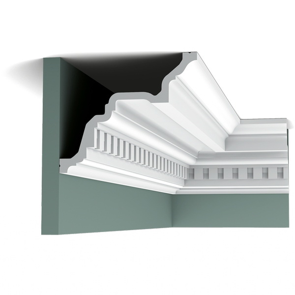 Большой классический карниз с зубчатыми блоками. Мгновенно придает изысканность любому интерьеру.