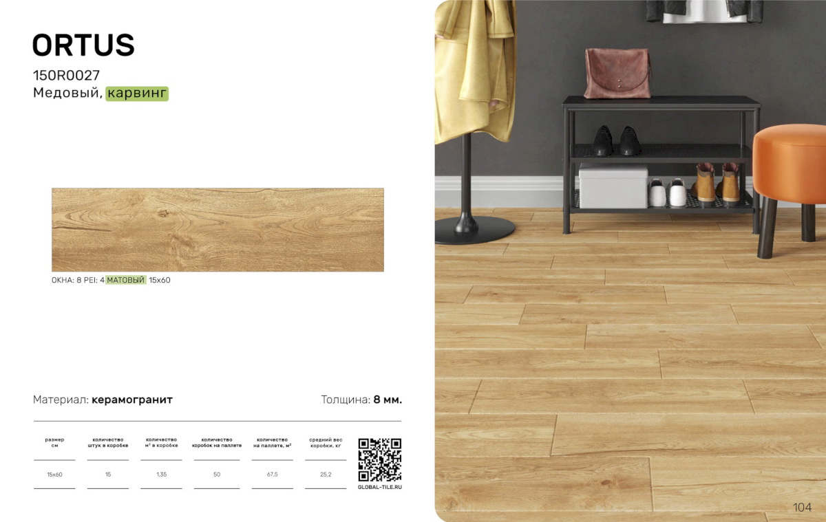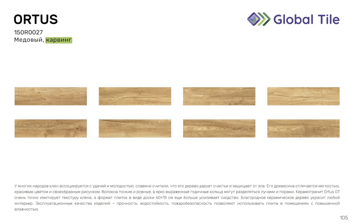 Главная / Каталог / 150R0027 Керамогранит GlobalTile Ortus GT Медовый 60x15 _ 1/67,5