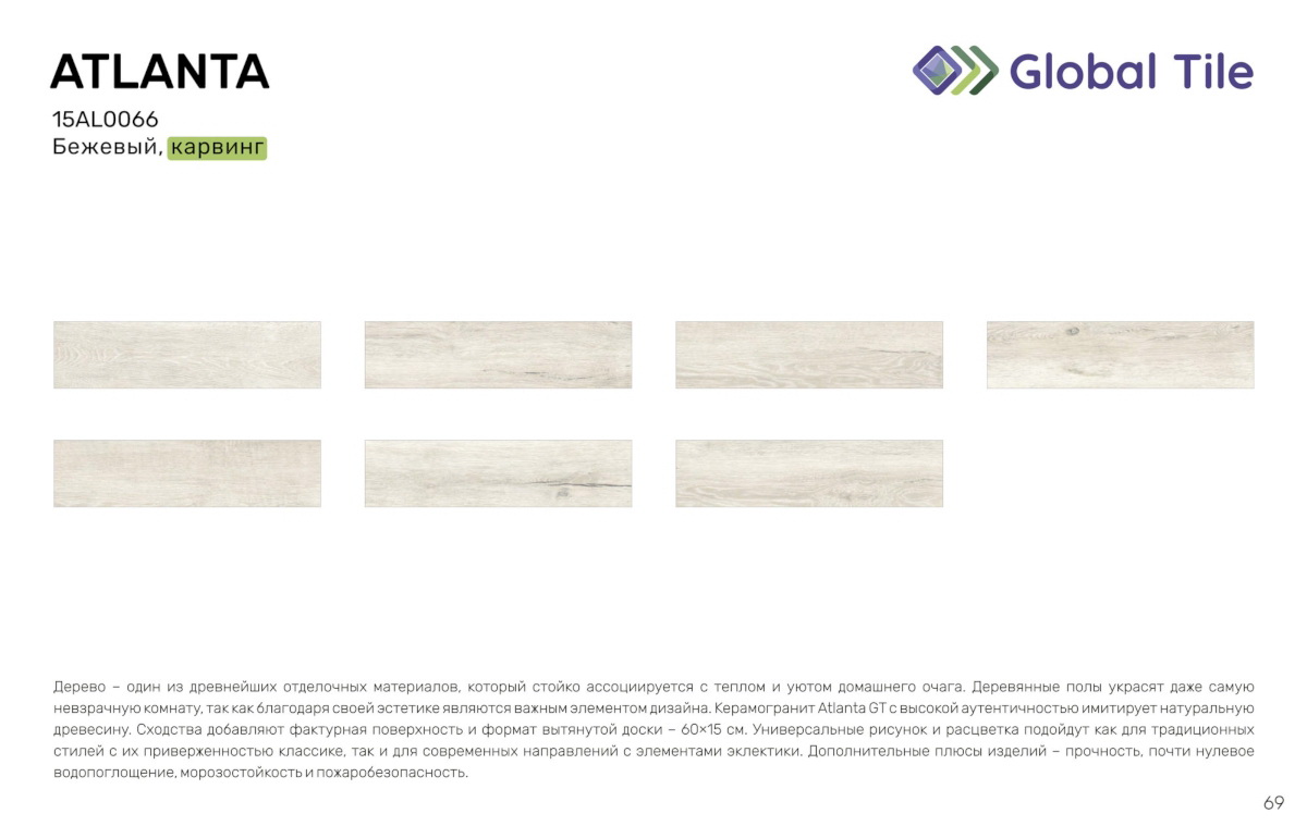 Главная / Каталог / 15AL0066 Керамогранит GlobalTile Atlanta GT Беж. 60x15 _ 1/67,5