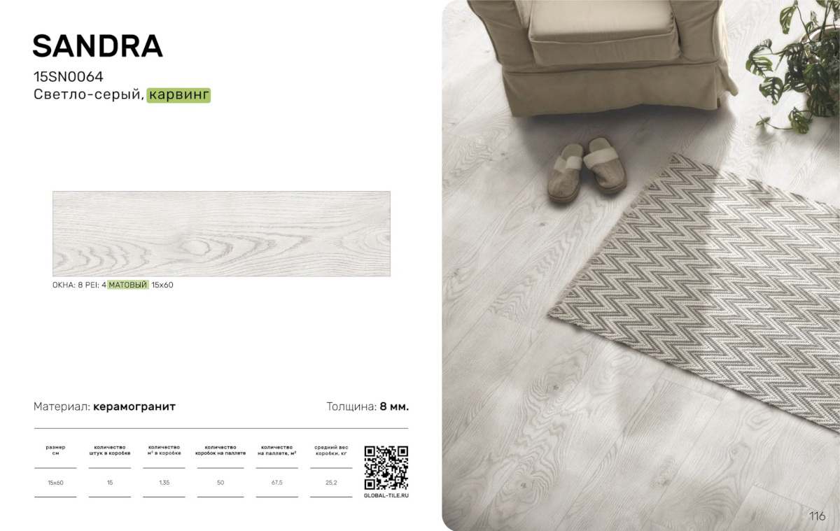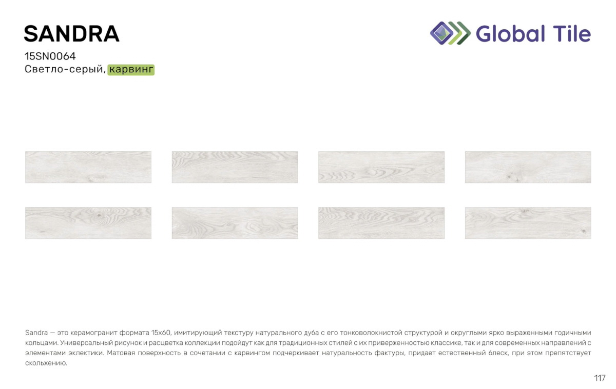 / 15SN0064 Керамогранит GlobalTile Sandra_GT светло-сер. 15x60 _ 1/67,5