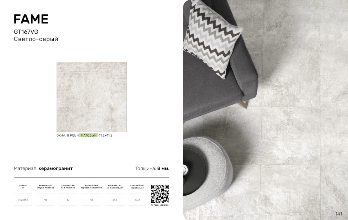 Главная / Каталог / GT167VG Керамогранит GlobalTile Fame_GT светло-сер. 41,2x41,2 _ 1/81,6