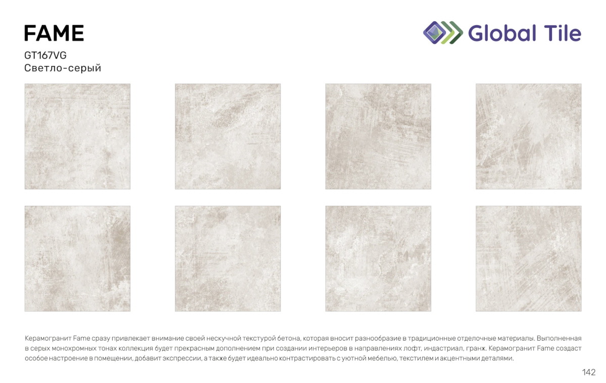 GT167VG Керамогранит GlobalTile Fame_GT светло-сер. 41,2x41,2 _ 1/81,6