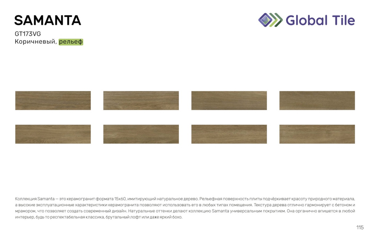 Главная / Каталог / GT173VG Керамогранит GlobalTile Samanta_GT Кор. 14,7x59,4 _ 1/65,5