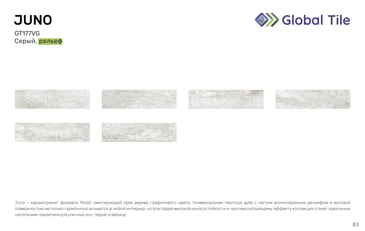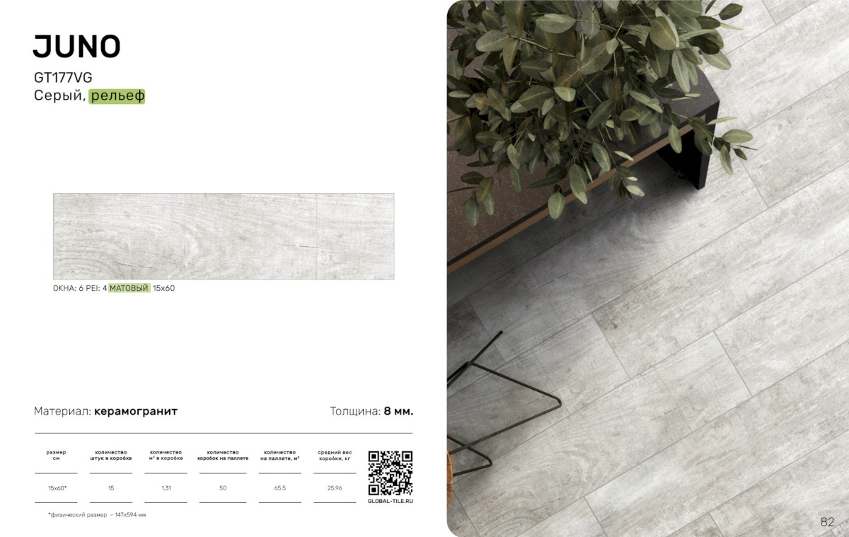 / GT177VG Керамогранит GlobalTile Juno_GT Серый 14,7x59,4 _ 1/65,5