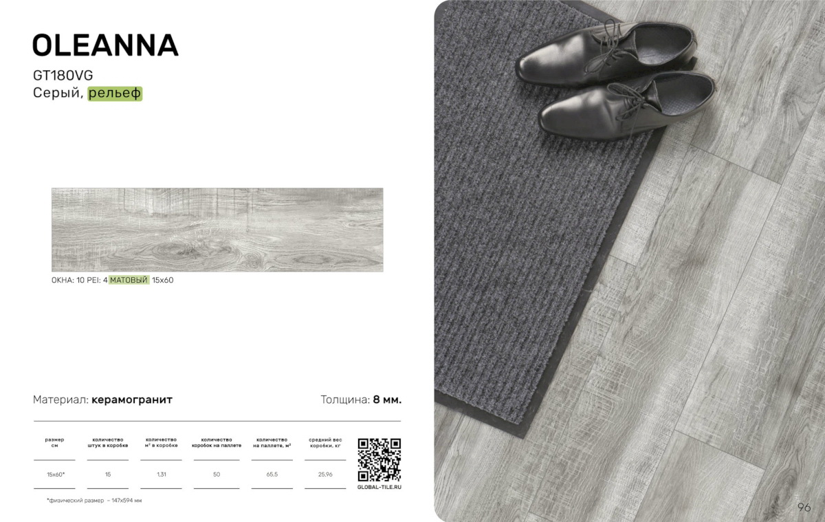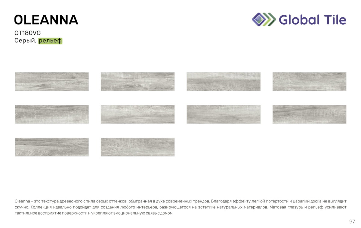 / GT180VG Керамогранит GlobalTile Oleanna_GT Серый 14,7x59,4 _ 1/65,5