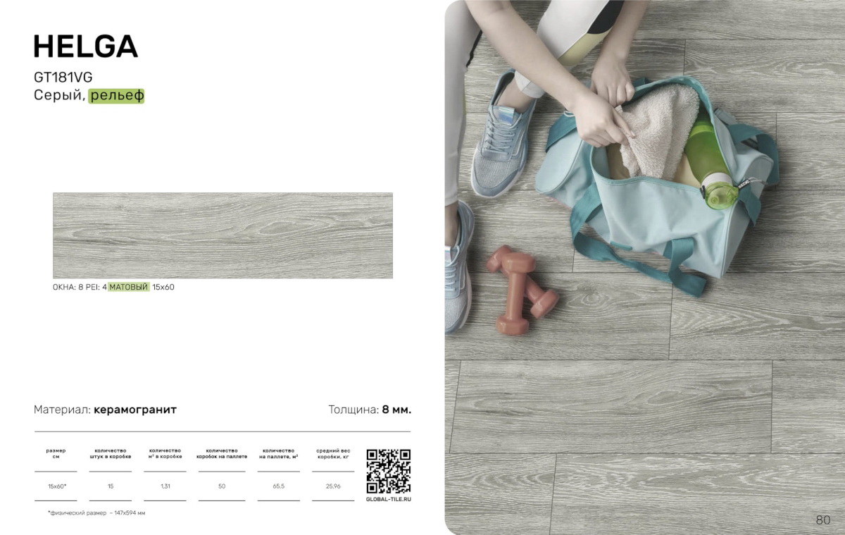 / GT181VG Керамогранит GlobalTile Helga_GT Серый 14,7x59,4 _ 1/65,5