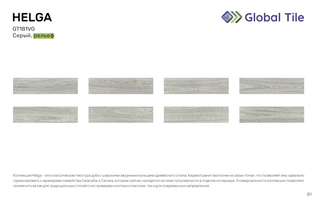GT180VG Керамогранит GlobalTile Oleanna_GT Серый 14,7x59,4 _ 1/65,5