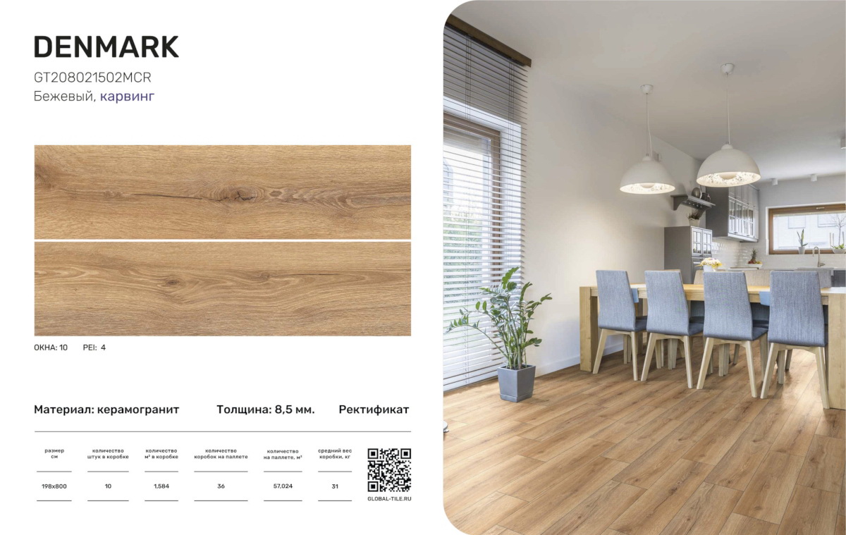 Главная / Каталог / GT208021502MСR Керамогранит GlobalTile Denmark_GT бежевый 19,8x80 _ 1/57,024