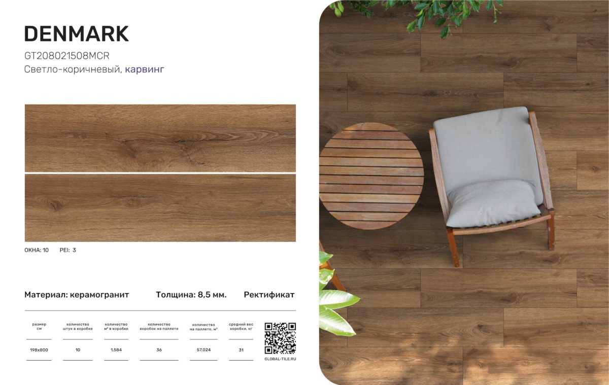Главная / Каталог / GT208021508MСR Керамогранит GlobalTile Denmark_GT Светло-кор. 19,8x80 _ 1/57,024