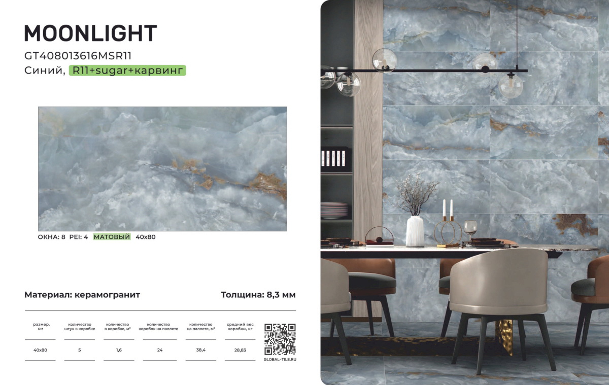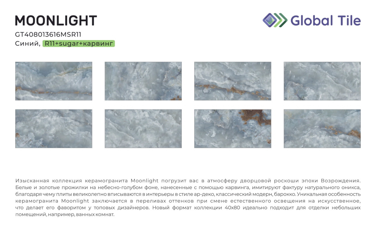 GT408013616MSR11 Керамогранит GlobalTile Moonlight_GT Синий 40x80 _ 1/38,4