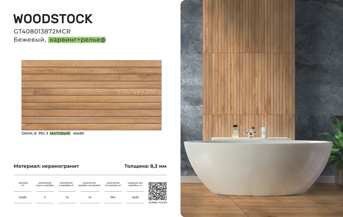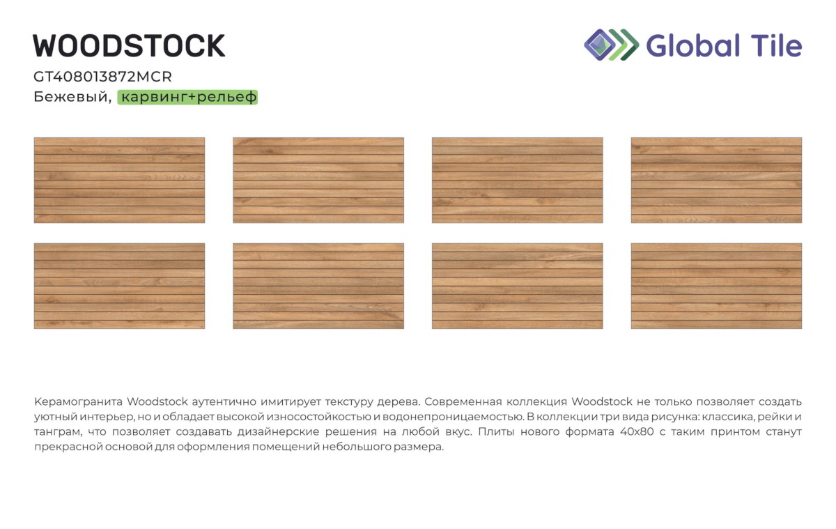 Главная / Каталог / GT408013872MCR Керамогранит GlobalTile Woodstock_GT Бежевый 40x80 _рейки 1/38,4