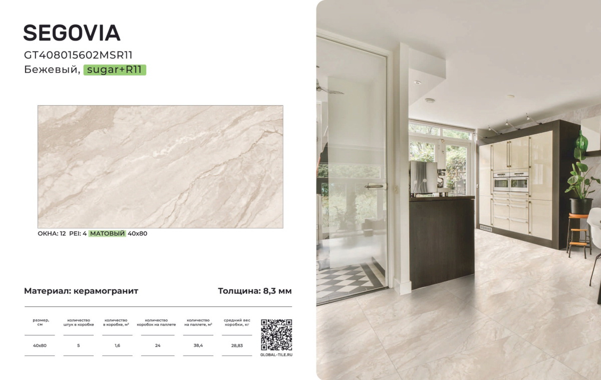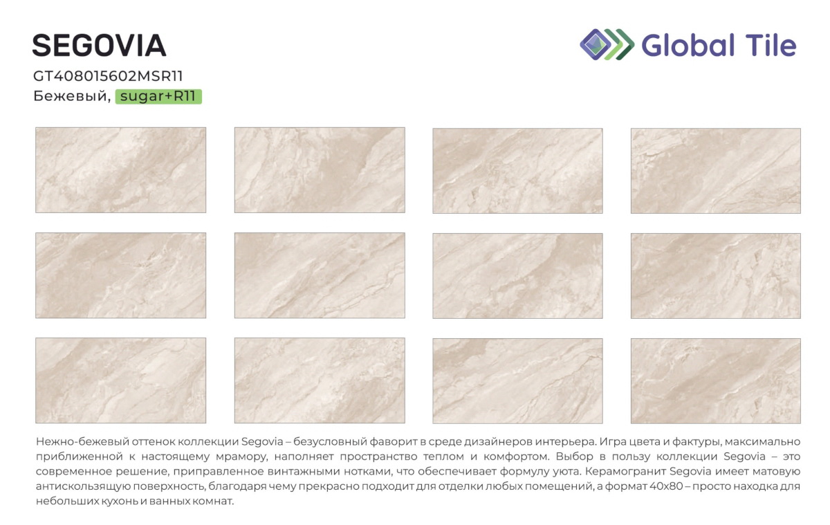 GT408015602MSR11 Керамогранит GlobalTile Segovia_GT Бежевый 40x80 _ 1/38,4