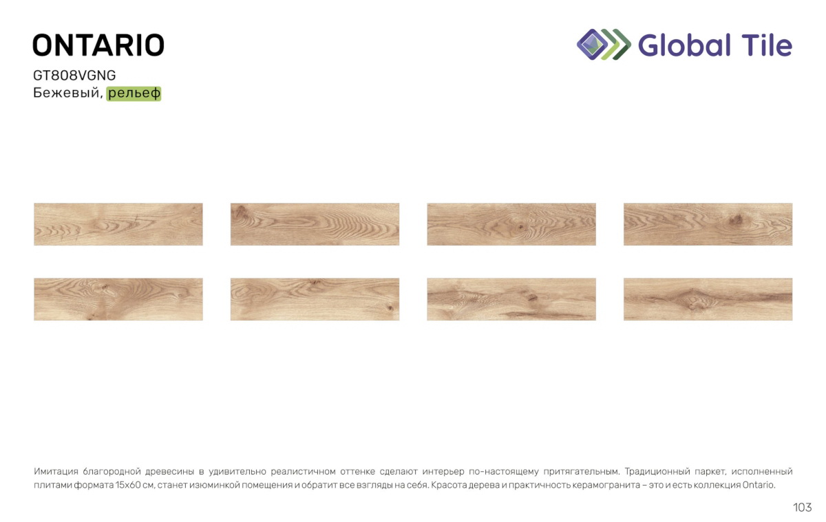 GT808VGN Керамогранит GlobalTile Ontario GT Беж. 14,8x59,7 _ 1/66,25