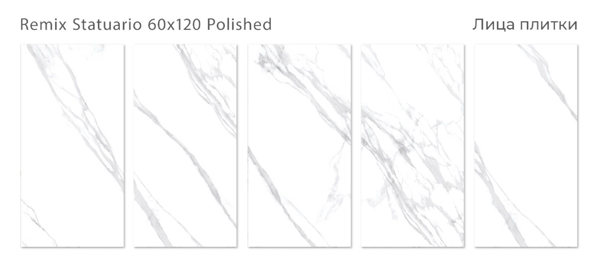 Плитка Remix Statuario 60x120 Polished холодный тон прожилок